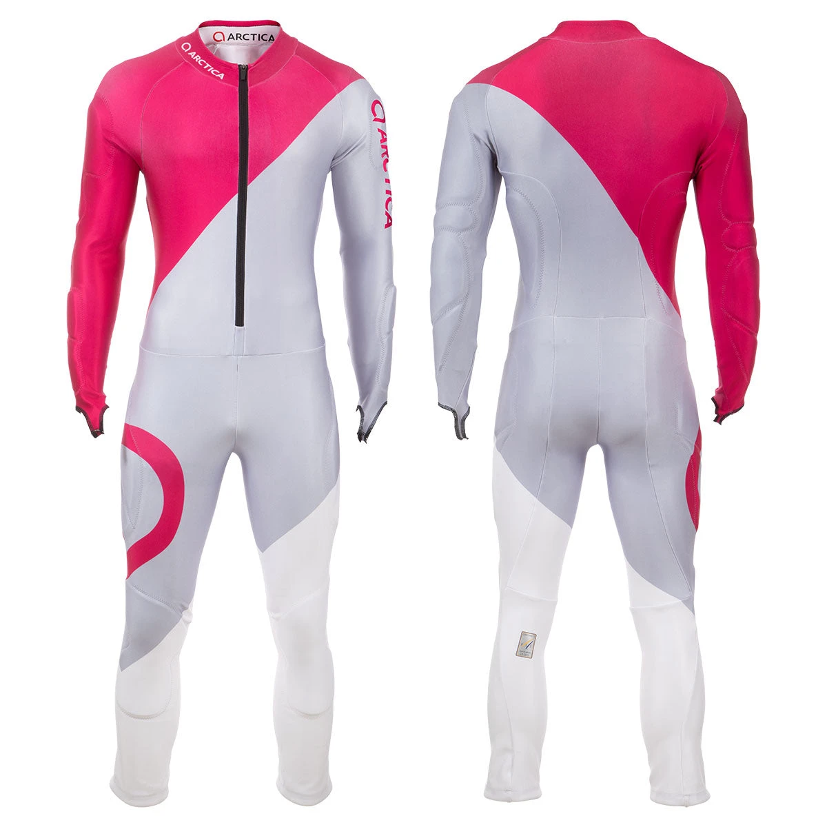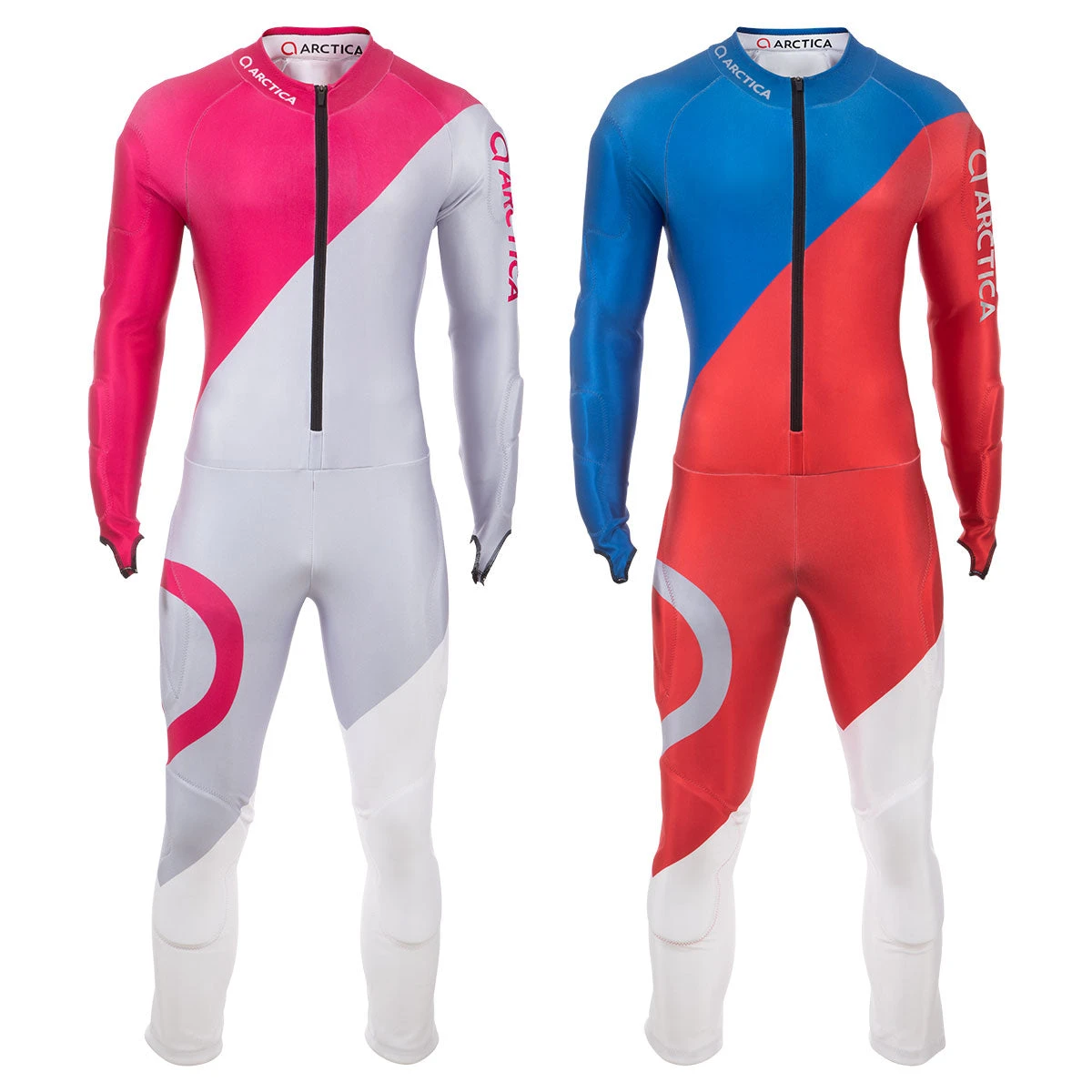 The Arctica Junior GS Race Suit features exclusive RACEFLEX fabric for unmatched quality, performance, and value. RACEFLEX is a highly durable three-layer stretch polyester with high elasticity, accepts graphics incredibly well, and passes FIS air porosity requirements. The FIS label printed on the back left leg ensures legality. They are engineered with a nine-panel anatomical construction and elastic thread to provide the best possible fit. Spring-loaded zipper pulls, and silicone cuff grips guarantee that your suit stays in place and close to the body. Pads are removable to customize per racer preference.