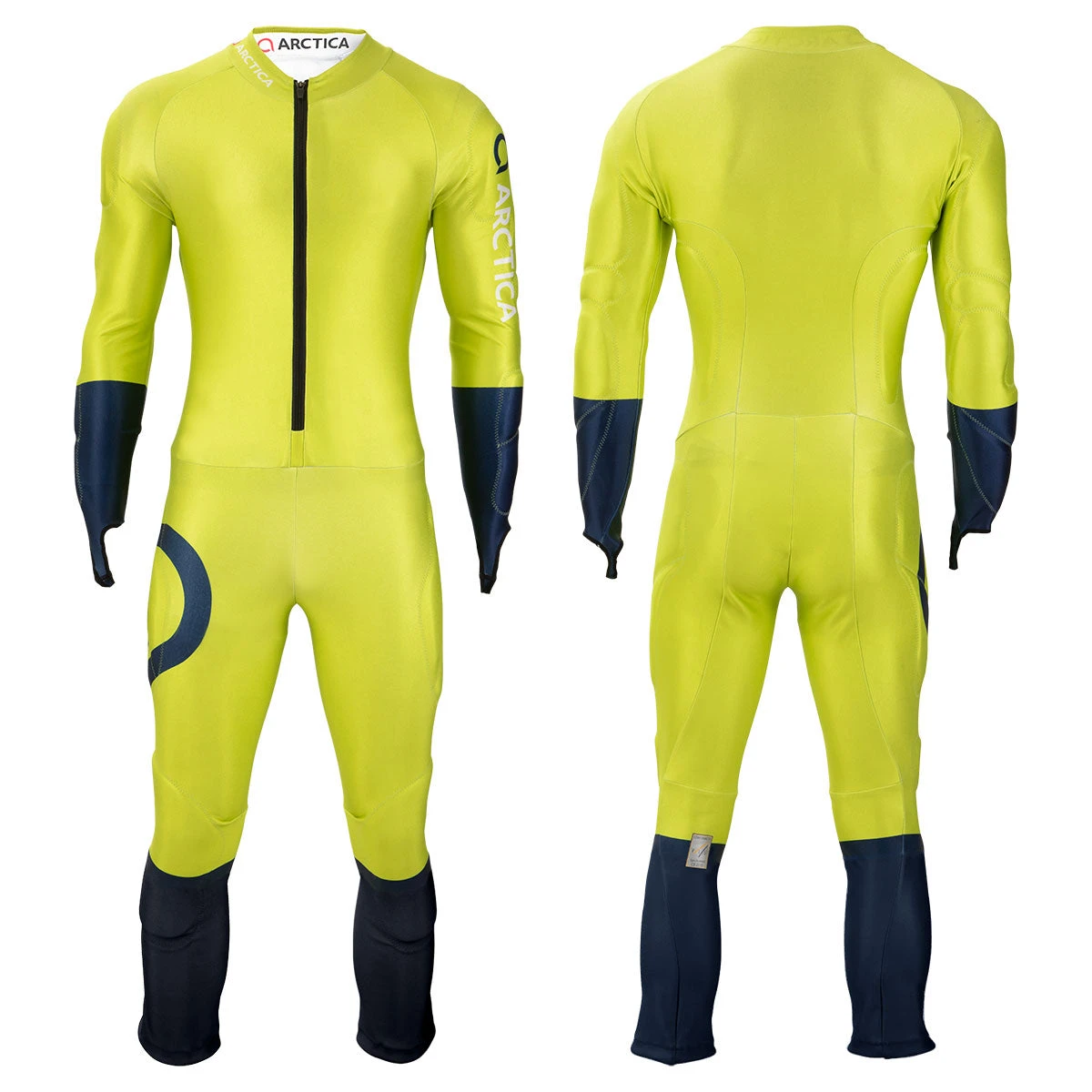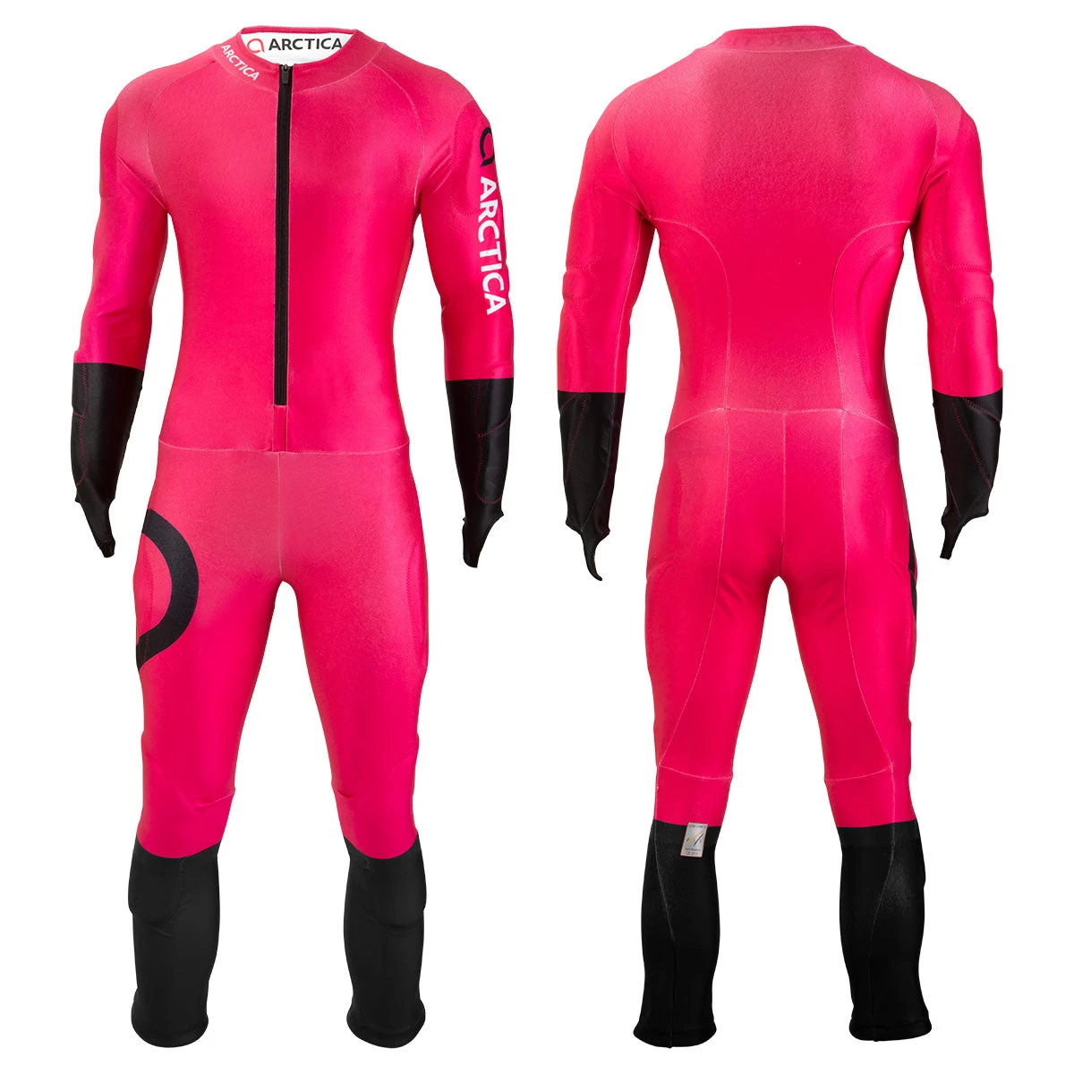 The Arctica Junior GS Race Suit for unmatched quality, performance, and value. Passes FIS air porosity requirements and has the FIS label printed on the back left leg to ensure legality. They are engineered with a nine-panel anatomical construction and elastic thread to provide the best possible fit. Spring-loaded zipper pulls, and silicone cuff grips guarantee that your suit stays in place and close to the body. Pads are removable to customize per racer preference.
