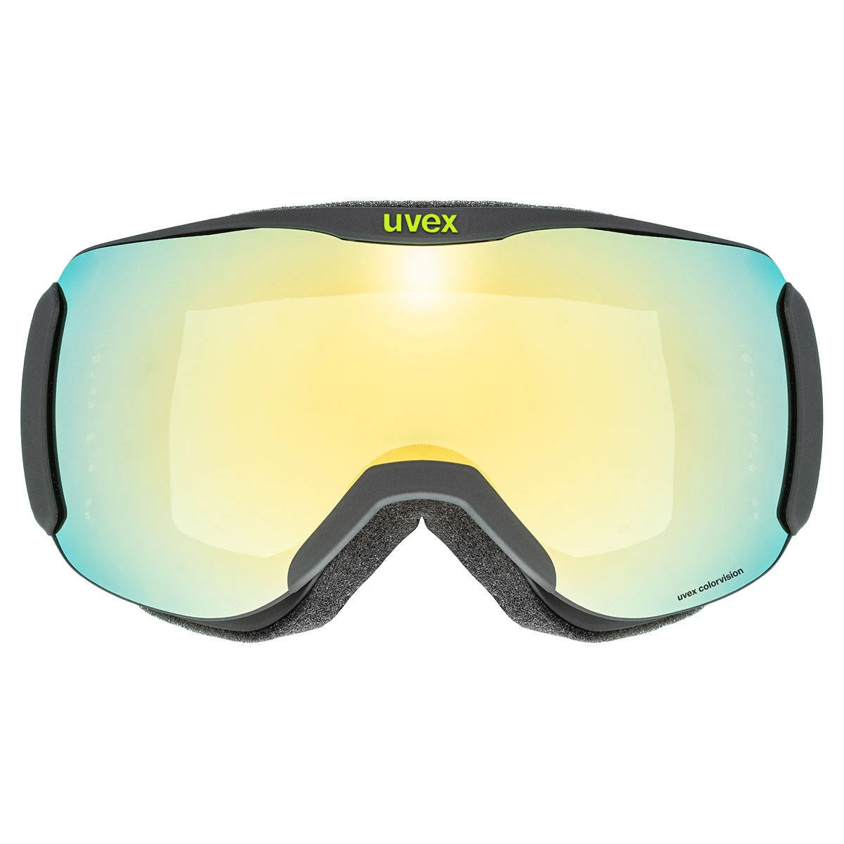 The Uvex downhill 2100 CV is an iconic, race-optimized ski goggle with a narrow frame, extra-wide field of view and spherical lens. The stylish top-of-the-range model seamlessly continues the success story of the Uvex Downhill 2000 series, which has been reliably protecting winter sports enthusiasts from sun, wind and weather for over 50 years. The Uvex Downhill 2100 CV model has an enlarged field of view, reduced frame and improved fit, especially around the nose. The innovative Uvex Colorvision® color and contrast filter enhances perception and ensures a unique visual experience. And what’s more, the injection-molded, decentred lens assures you of a distortion-free view and remains mist-free at all times thanks to Uvex Supravision® technology.