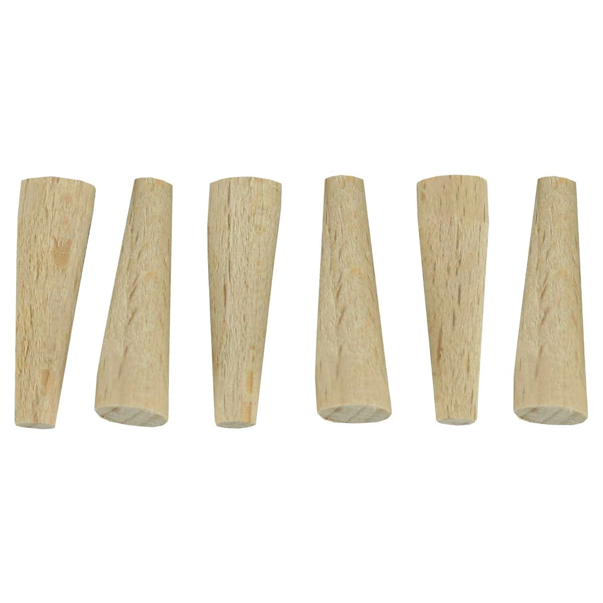 These wood plugs fit perfectly in ski binding holes. Fill screw holes with epoxy and pound in wood plugs to repair ski binding pull-outs. 6 per package. Approximately 1″ x 1/4″